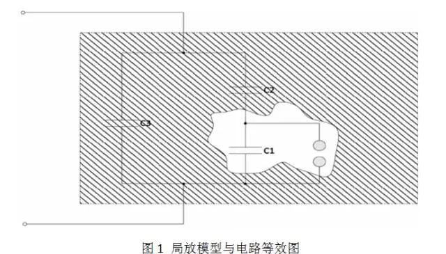 局部放電是發(fā)生在設(shè)備絕緣內(nèi)部,未貫通高低壓電極的放電現(xiàn)象,會(huì)造成絕緣劣化,最終導(dǎo)致電纜壽命縮短。傳統(tǒng)的油浸紙絕緣電纜,局放對(duì)其絕緣性能影響較小,而對(duì)于固體絕緣電纜,如XLPE(交聯(lián)聚乙烯)或者硅橡膠電纜,局放會(huì)對(duì)其絕緣造成永久性損傷,導(dǎo)致絕緣性能下降。圖1展示了局放模型與等效電路。在生產(chǎn)或安裝過(guò)程中,電纜絕緣內(nèi)部存在缺陷,如固體絕緣的空隙(void),液體絕緣的氣泡,或電場(chǎng)不均勻處。將空隙等效為電容c1,空隙的上層以及下層的絕緣材質(zhì)等效為c2,臨近部分的完好絕緣等效為c3。我們可以獲得局放電路的等效模型。局放通常發(fā)生在絕緣內(nèi)部,而且等效電容c1、c2以及c3無(wú)法被測(cè)量,因此,局放檢測(cè)屬于非直接測(cè)量手段。
