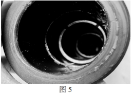 事端分支箱電纜終端所運(yùn)用的硅脂密封功用不良,故障產(chǎn)生后,當(dāng)拆撥其它兩相電纜頭時(shí),因?yàn)楣柚尸F(xiàn)干枯粘結(jié)(如圖5),需求多人合力才調(diào)撥出,可見(jiàn)硅脂已不能起到光滑防潮與絕緣的作用,不能與電纜頭同“呼吸”,彈性功用大為下降。