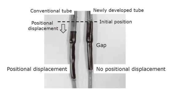 咱們開發(fā)了可用于維護一對多的轎車線束銜接的雙壁管。當加熱到相對較低的溫度(135°C)時,新管契合導線銜接的不規(guī)則外形。別的,該管不會引起粘合劑的流出或引起方位偏移,而且在125℃的運用環(huán)境下表現(xiàn)出高機械特性。因為其優(yōu)異的熱縮短性和密封功能,新管材有望在轎車范疇得到廣泛運用。