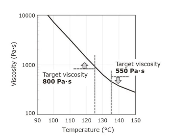 圖7.新開發(fā)的管子(內(nèi)層)粘度的溫度依賴性