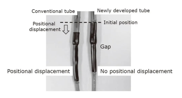 咱們開發(fā)了可用于維護(hù)一對多的轎車線束聯(lián)接的雙壁管。當(dāng)加熱到相對較低的溫度(135°C)時(shí),新管契合導(dǎo)線聯(lián)接的不規(guī)則外形。別的,該管不會引起粘合劑的流出或引起方位偏移,而且在125℃的運(yùn)用環(huán)境下表現(xiàn)出高機(jī)械特性。因?yàn)槠鋬?yōu)異的熱縮短性和密封功用,新管材有望在轎車范疇得到廣泛運(yùn)用。