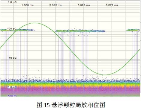 懸浮顆粒以SF6以及N2作為絕緣介質(zhì)的設(shè)備,裝置或運(yùn)轉(zhuǎn)中混入顆粒。改動(dòng)電場(chǎng)散布,發(fā)作局放。該類型局放散布如圖15所示。局放幅值基本共同,會(huì)集在某幾個(gè)相位。隨著外加電壓的增高,放電幅值堅(jiān)持共同,但頻率添加。
