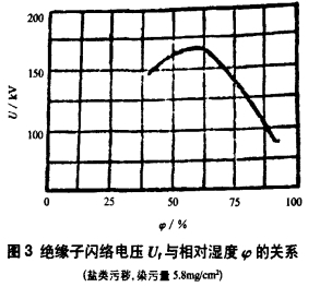 電纜分支箱地處交通要道,背靠山坡,面向公路,塵土很大,絕緣子表面的積塵較多,在污層受潮時。其間所含可溶性鹽類及酸堿成分溶解于水中,使表面電導(dǎo)率驟增,泄露電流許多增加,大大下降閃絡(luò)電壓。一般說來,絕緣子的污閃電壓隨其污染程度的增加而下降。污染嚴(yán)峻時,跟著污染程度繼續(xù)增加,污閃電壓的下降已很緩慢,但這時污閃電壓常常現(xiàn)已低于作業(yè)電壓了。單調(diào)污穢的電阻較大,它并不下降絕緣子的閃絡(luò)電壓,一般當(dāng)空氣相對濕度小于50%~70%時,沿面閃絡(luò)電壓不會下降;高于這數(shù)值時,跟著濕度增加,閃絡(luò)電壓敏捷下降,如圖3所示。實踐作業(yè)中,絕緣子污閃事故都發(fā)生在霧、露、陰雨連綿等高濕度的氣候.由于在這種條件下、積塵中水深性的鹽類溶解,使污層成為了半導(dǎo)體,大大增加泄露,下降閃絡(luò)電壓。本次事故正值當(dāng)?shù)厍лd一時的大雨期間,而開關(guān)柜柜體的密封較差,柜內(nèi)相對濕度已達90%以上,開關(guān)柜的操作安排安排嚴(yán)峻腐蝕,以至于徹底不能正常操作,由臟污沿面放電的進程的評論可知,污層的電阻越大,泄露電流越小,放電翻開越困難,閃絡(luò)電壓也相應(yīng)行進。在相同污染和濕潤條件下,介質(zhì)表面形狀、南北極間的沿面最短距離即泄露距離是影響表面電阻和閃絡(luò)電壓的重要要素。泄露距離增加,污閃電壓也增加。不同成都的污穢情況對線路及變電站絕緣的影響程度是不同的,因而應(yīng)依據(jù)不同的污移情況,選用相應(yīng)的絕緣標(biāo)準(zhǔn)保證電網(wǎng)安全作業(yè)"?,F(xiàn)在,我們用泄露比距來估計臟污條件下絕緣子的耐污功用。由于我局所轄電網(wǎng)為渝中區(qū),被定為三級污區(qū),按變電站設(shè)備考慮泄瀾比距應(yīng)大于4cm/MkV。