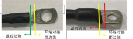 A.熱縮套管溢膠方位不能超過環(huán)端對接面邊際;
