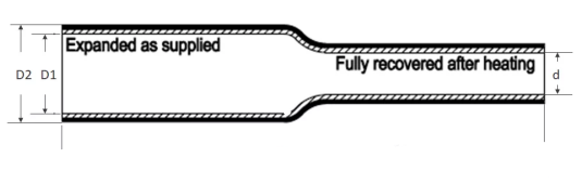不要認(rèn)為熱縮套管每次都會(huì)收縮到完全恢復(fù)的尺寸。有時(shí)候熱縮套管會(huì)收縮的比指定的恢復(fù)內(nèi)徑多一點(diǎn),但是它仍滿足最大收縮尺寸。